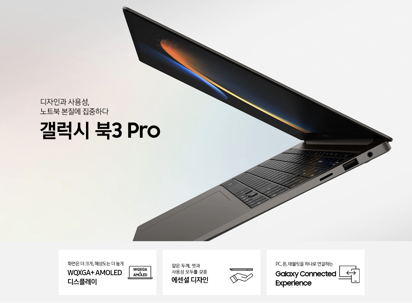 갤럭시 북3 프로의 포지션은 아주 명확합니다. 대학생이나 직장인이 가볍게 쓸 수 있는 노트북!