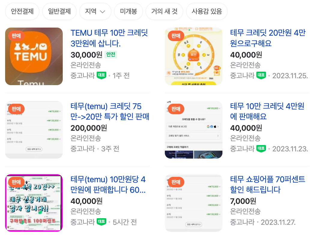 초기에는 테무가 사기가 아닌가하는 우려가 많았지만 요즘은 입소문을 타면서 눈에 띄고 성장하고 있다고 하는데요. 알리 익스프레스 이용이 점점 늘어나는 이 시점에 테무의 등장으로 소비자들은 조금 더 저렴하게 물건을 구매할 수 있는 찬스인 것 같아요.